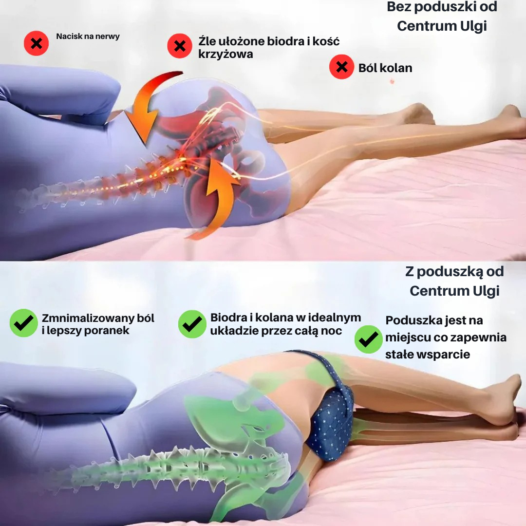 Kiedy ostatnio doświadczyłeś poranka bez bólu? Nie jesteś sam. Jako osoba śpiąca na boku, jeśli nie leżysz całkowicie prosto, Twoja górna noga opada, wywierając nacisk na okolice lędźwiowe, skręcając biodro, a kolana zbiegają się, powodując dyskomfort. Zaniedbanie tego może spowodować bardziej złożone problemy zdrowotne, takie jak uszkodzenie nerwów w dolnej części pleców, uporczywy dyskomfort i potencjalnie doprowadzić do drastycznych środków, takich jak operacja.